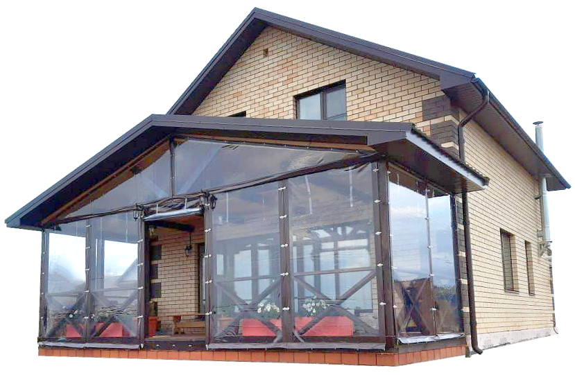 Закрытая мягкими окнами терраса задерживает холодный воздух и не даёт стенам дома промерзать